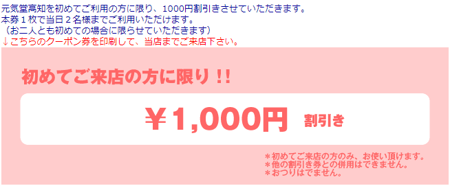 これから初めて元気堂高知ご利用いただく方へ<初回専用クーポン>(^^)